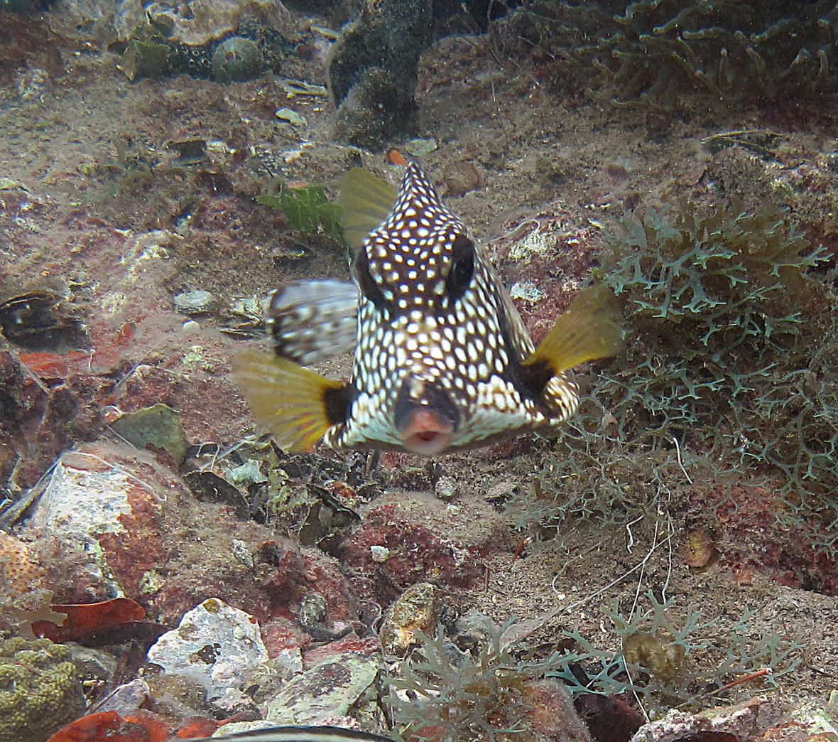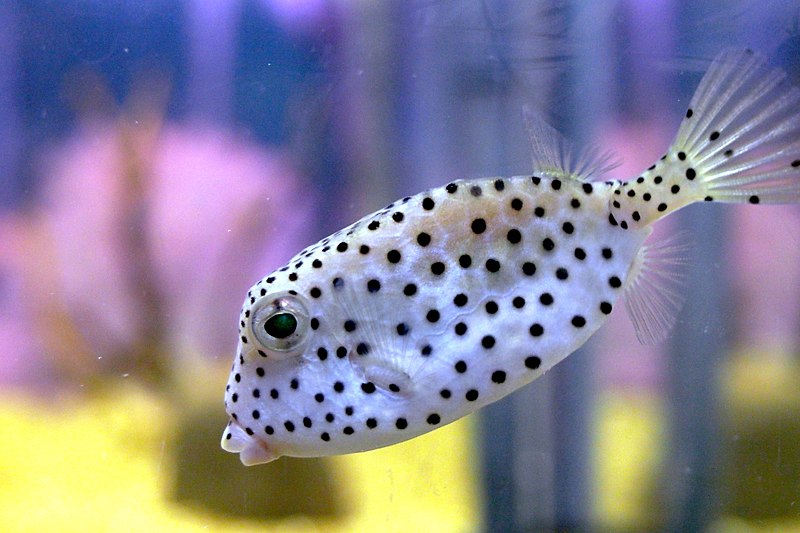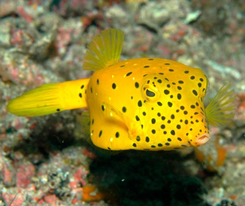- Estos peces también se conocen por los nombres de pez cofre amarillo, cubicus Boxfish, Polka-dot Boxfish.