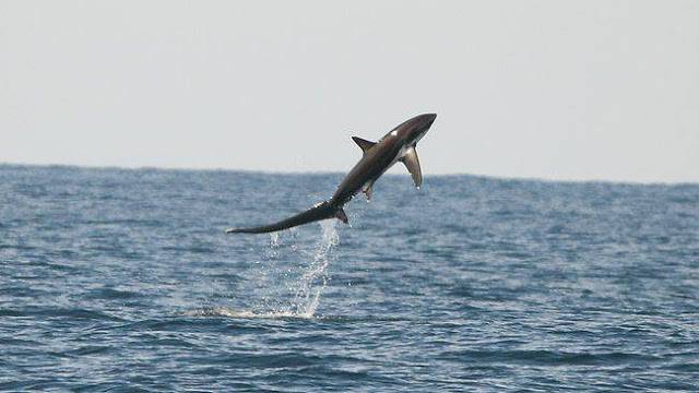 - Tienen hocico puntiagudo y una larga aleta caudal que le ayuda a desplazarse en el agua y a su vez da una forma aerodinámica parecida a un torpedo.